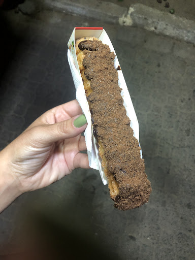 Read moreJa tinha lido sobre esse churros, mas quando fui pra Ilhabela no fds de 25.10.2020 nem lembrei dele... Procurávamos por sorveteria a noite por volta da 00.30 e ja estava td fechado, quando avistamos uma van vendendo churros. Paramos, perguntei algumas coisas pro rapaz que foi extremamente educado. O churros foi bem servido, massa boa, recheio e cobertura otima, nem consegui comer tudo! E ainda ofereceu agua.pra minha cachorra e ainda deu copinho. Quando fui ver era o rapaz do churros que.coincidentemente eu queria conhecer!!! Nota 5 válida COM CERTEZA! Produto e...