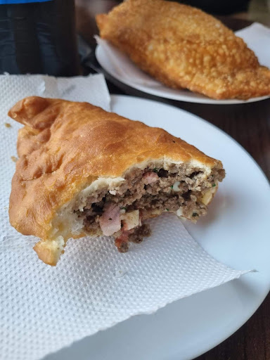 Um lugar pequeno com poucas mesas, limpeza frequente e atendimento bom. Pedi 1 pastel de pizza e o outro de carne, são bem grandes e recheados. A fogazza é divina e muito bem recheada. Em geral vale muito a pena. O preço é muito barato para o que eles oferecem.