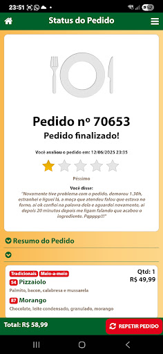 Read moreGosto muito das pizzas ,há anos somos clientes devido há um único dia meu filho passar o cartão e não ter passado ,liguei na pizzaria para fazer um novo pedido um outro dia,aí a senhora que aténde lá ou não sei se é a dona me maltratou como se eu fosse uma criminosa e agora se eu ligo e peço para entregar no meu endereço ela me falou peça em outra pizzaria pq aqui vai sair o valor maior do que as pizzas para entregar,gente como assim,que maltrato todo fim de semana eu meu filho e meu esposo paravamos ,o carro para retirar e efetuar o pagamento ,pq a pizzaria para mim no quesito pizzas é a melhor, E efetuei o pagamento ,via pix ela confirmou até me disse que o patrão ia descontar do salário dela,falei mulher jamais eu iria deixar de pagar ,mas ela me tratou como se eu fosse uma criminosa e ainda hoje se eu ligar e pedir uma pizza vai dizer que pq eu não peço em outro lugar.Fiquei decepcionada embora eu gosto muito de todas as...