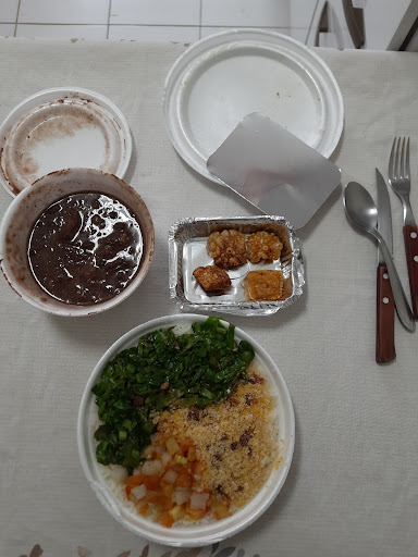 Também pedimos feijoada que acompanha arroz, couve, farofa, vinagrete e torresmo. É muito bem servida, mas falta um pouco de tempero, talvez um pouco mais de sal já bastaria para ficar mais saboroso. O torresmo estava queimado e com gosto de óleo velho. Mas fora esses pontos que podem ser melhorados estava bem gostoso e muito bem servido.