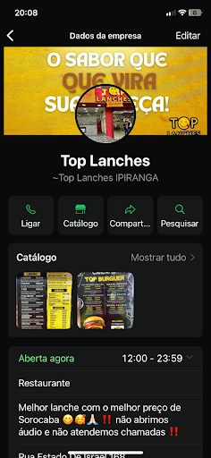 Read moreA moça que faz o atendimento e super competente ,atenciosa,já o rapaz ,um cara de barba ,sempre mal educado ,mal humorado sem competência nenhuma pra exercer a função,pena que ambiente assim com pessoas desse nível a tendência e só se afundar ,o lanche e bom ,ambiente bom ,porém tem que melhorar o atendimento.pena que não tem uma nota menor.nao recomendo.Eu sempre deixava pago o lanche para pessoa pegar ,aí hj cheguei para pegar como a pessoa não foi buscar o lanche o mesmo disse que não faria outro ,sendo que o combinado seria que era para ser feito quando ele fosse pegar .Deve ser mais um desses puxa saco querendo cargo que pena.respondendo ao proprietário da top lanches ,a unidade e do Ipiranga ,a moça atendente super educada ,agora o rapaz ,se acha o dono ,cheio de arrogância ,mal humorado e sem educação nenhuma,simplesmente está...