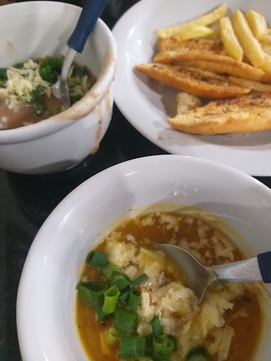 Pensa num ambiente familiar com caldinho de vó. Isso mesmo! Cada um mais delicia que outro! Canja, Dobradinha, Caldo Verde, Mandioquinha com Carne, Vaca Atolada, Feijão Mexicano e muito mais... Eu contei umas 15 variedades. Caldos bem elaborados e muito saborosos. Recomendo optar pelo rodízio, pois pagará um valor único (em maio 2024: R$ 45,00 na semana e R$ 50,00 no fds), com direito a se servir a vontade não só dos caldos, como também de pão, torrada, queijo ralado, cebolinha picadinha e barata frita. Além disso, o valor também contempla uma variedade de sabores de sorvetes de massa e açaí. As bebidas são cobradas à parte!