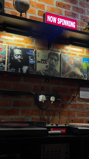 The ambience is the first thing that hits you. Warm lighting, carefully chosen decor, and the subtle background hum of vinyl records playing create a space that’s cozy yet modern, perfect for everything from solo study sessions to catching up with friends. The mix of wood textures and music-themed touches makes it feel inviting without trying too hard — the kind of atmosphere that makes you want to stay for “just one more cup.”