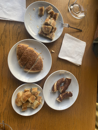 Bir kaç günlük seyahatimizin en lezzetli durağı oldu. Baklavayı çok beğendiğimizi söyleyemem trilece nefisti. Kahvaltılık ürünler çok çok iyiydi. Türkiye’deki lezzetleri bu kadar nefis ve değiştirilmemiş haliyle bulmaya alışık değiliz. Bu durak bizi çok mutlu etti. Kıymalı ve patatesli börek bana biraz yağlı geldi tabi bu benim şahsi görüşüm. Ispanaklı peynirli böreğe bayıldım. Simit mükemmel. Pastaları deneyemedik fakat hepsi çok taze görünüyor. Mekan da oldukça yemiz görünüyor fakat bahçe bölümünde çok hoş olmayan...
