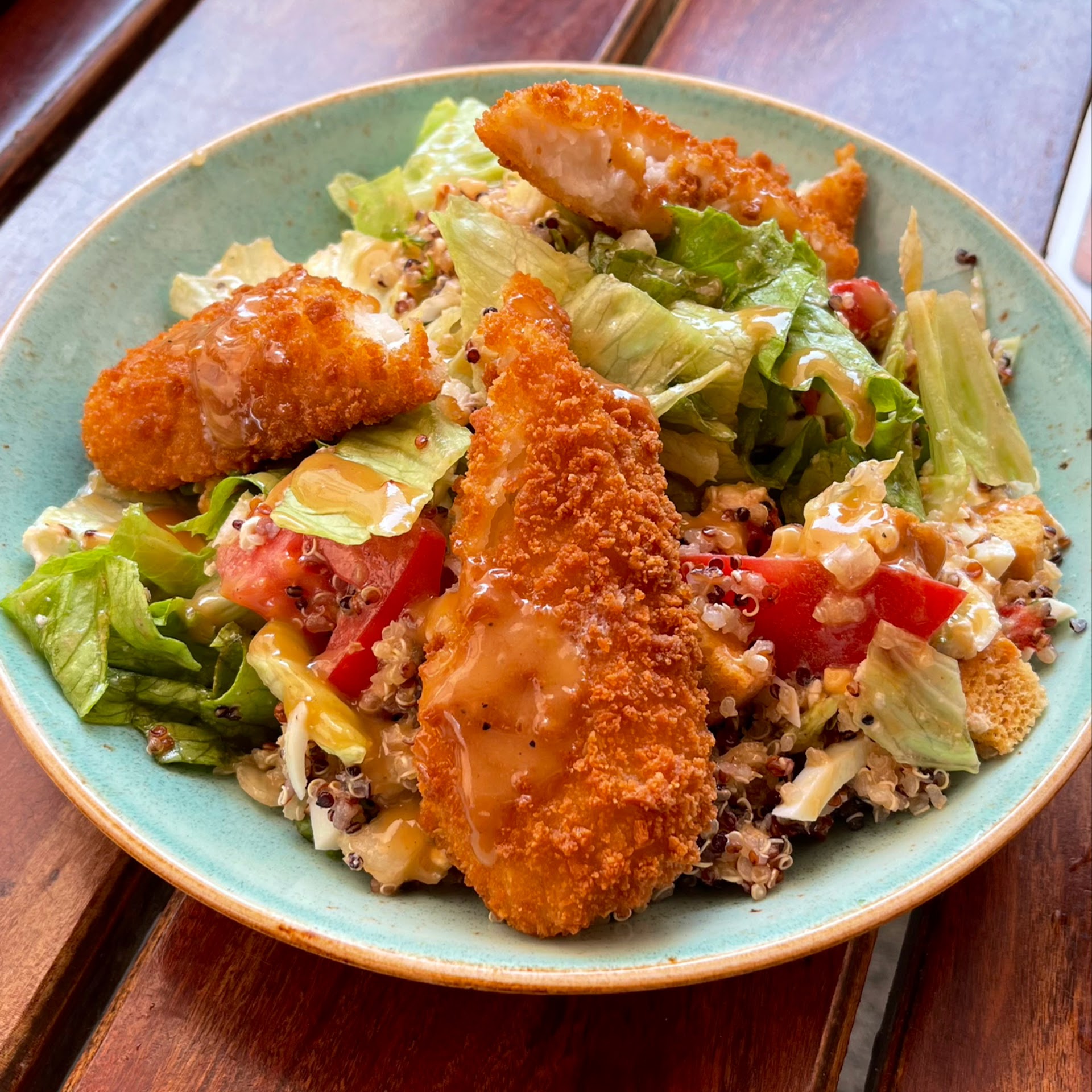 Now, I’m not saying the food was Michelin-starred or anything, but there’s a certain charm to dishes that are unapologetically simple. My Caesar salad tasted like it had been assembled with ingredients directly from the frozen aisle of your local Lidl—and yet, I loved it. The croutons had the crunch of bread with no dreams, the dressing whispered, “I am shelf-stable,” and somehow it worked. It was hearty, unfussy, and exactly what I didn’t know I wanted.