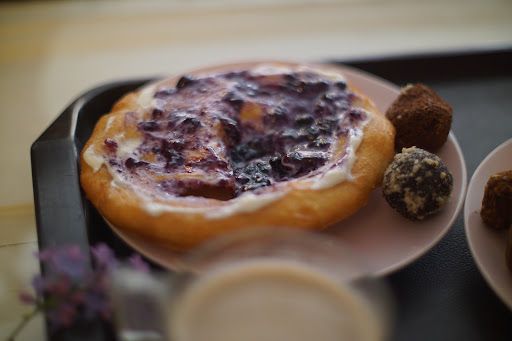 I have been wanting to visit this place for quite some time now. Me and my friend just passed by it and we both just looked at each other and immediately walked towards the front door. Once you enter you see a smiling face behind the counter and a menu on the wall. After you choose what you are getting, you can head to the second floor where there are few tables to sit down and relax. As you can see from the photos there aren't many seats so don't plan to go there with many people. On the other hand, its the perfect place to just chill and have a break from your walk. We sat next to the window and just enjoyed the view of all the passing vehicles and pedestrians. And about the food you may wonder? For those who don't know, "mekitsa" is a traditional Bulgarian dish made of kneaded dough which is deep fried. I tried mekitsa with cream cheese and blueberry jam and my friend chose mekitsa with cheese and yellow cheese. And oh la la.... Delicious. Just delicious! As for beverages we got lavender syrupe and ice coffee with hazelnut flavor. The lavender syrupe.... once you take a sip its like ice tea, then you swallow it and the lavender just hits your brain cells. Its was quite an experience. I loved it! So long story short, I am going back for more. Don't hesitate and just try this place. Its...