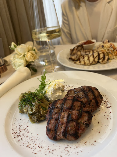 GOOD: Barely the only thing I can mention is - the location and the place is nice... The water is good ;) BAD: Food. For sure does not worth the price given. We had a dinner for two ordering - king's shrimps which looked nice but were... tasteless; pork steak - was not delicious and tasted bit strange; a salad with tomatoes and eggplant - nothing special; a salad with goat cheese - relatively good but I have tasted much better goat cheese. The bread was not baked enough. Service - the waiters are not adding to the nice athmosphere, something I would expect from this class of a restaurant. The same service I will get in a local pub. Had to wait for the bill for more...