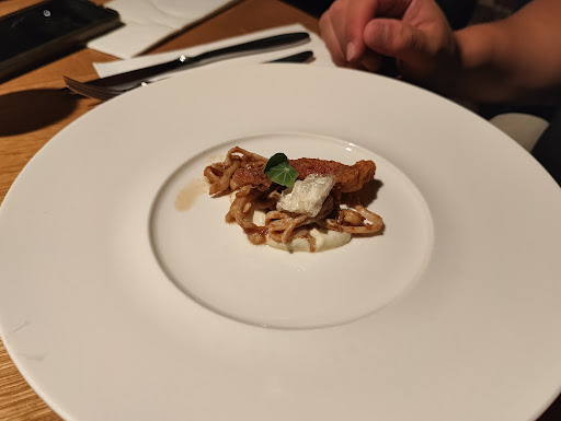 Read moreIf you seek a Michelin star experience this is not recommended. Given the high pricing - especially for Sofia - the food and service does not stand up to it. The ATMOSHERE is of a cool modernist warehouse design true to a cosmic concept, yet a bit rough altought the seating (except for the bar) was comfortable. the lighting was too reflective on the menus making their reading tough. Since we only had 90 mins before the next booking, we started at the lower level main dinning area and 60 mins later we were moved to the front/upper level bar area, yet our table stayed empty for 75 mins, so we could had stayed and finished there. SERVICE : We lost some valuable time at the ordering as the menus (colors, structure, type face, set menus) were not well written, riddle based, (no sections for starters, mains, desserts) difficult to digest and a heavier "selling" of the set menus at the top. We had two waiters who tried to explain the menu, yet for such type of abstract innovative food, their English was not up to the task and they seemed annoyed, rolling their eyes when we kept asking questions. Our dinning experience was saved when we got a bar waitress to attend to us and then she (Plammena) kept serving us at the bar and she was very good, polite, helpful with good English skills FOOD: we had the 9 steps big bang meat menu and the 6 steps green planet menu, as we were not allowed to have the 9 steps menu for two. The menus were matched with the 4 steps Bulgarian wines (which were good). Some dishes were very good (ie tomatoes and katuk cheese, trout, chicken) others were a let down (ie the moussaka, the eggplant w lentils, the eggs dish, the calamari with XO sauce and prosciutto which was tasty but too salty). Overall eclectic dishes , unsure of Bulgarian roots, in a presentation to impress, yet flavours that do not really excite (the desserts are an exception,) , especially for the price (we paid 190 euros for 2!). I figured that if we had ordered the same dishes in larger portions a la carte, we ld had paid only 15 euros more, so I recommend the a la carte option, although paying 25 euros for a moussaka that is upside down with a torched bechamel sauce, yet blunt, is not recommended. Overall an unusual, edgy dinning experience that left us with a heart burn and very thirsty (excessive salt) yet a cosmic one, as the name implies. The basics are there but a focus is needed on less complexity, more taste, better service so as to do justice to the...