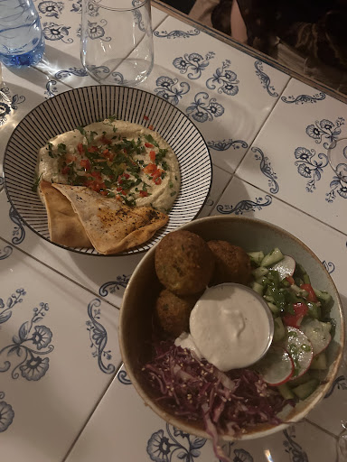 The menu is a mess. 6 BB people spend like 20 minutes reading it. 3 pages of stuff. No coherent theme. Just stuff. Tarama next to ribs, humus and burger. Fried chicken with guacamole or something like that.