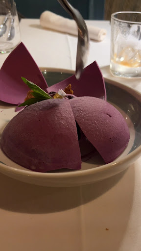 Desert was excellent: Bulgarian 2.0. Yogurt done violet was broken to revealed cream of violet with jelly and honey comb cracker and frozen yogurt dome.