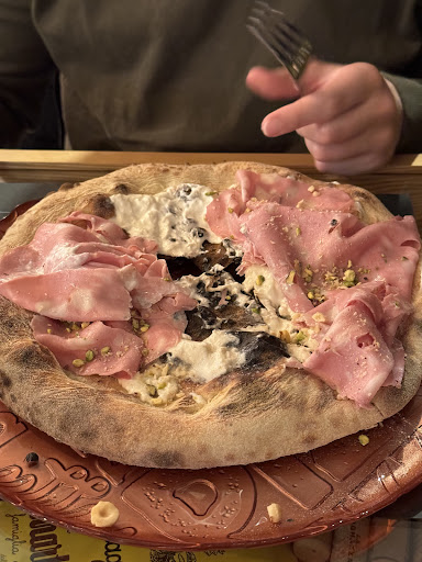 Read moreI had very high expectations and they were hit! It was a bit complicated to eat there without reservation. They open only in the evening and work from Tuesday to Saturday. Anyway totally worth go there. We ordered two Aperol Spritz which were great. (they have also on the menu the Sbagliato cocktail made with vermouth!). Then we were brought some focaccia offered by the Pizzeria, with some extravergine oil and balsamic vinegar. I had not enough time to take a photo, it was absolutely stunning the oil. After that, we asked to be moved in a table inside and they let us, we took two pizza: my was Olio d'Oliva with Burrata on top and slices of San Daniele Prosciutto and Carbonara, with pecorino cheese and guanciale. The dough is very light and very tasty. Between those two pizzas we preferred the Olio d'Oliva. Then we took another because we curious to try another and went for Mortadella and pistachio. Again terrific! I was too full and could eat my half but still, this place has great food quality and service was great too, kind people, very helpful when we asked to be moved inside, time to time were coming to ask if we need something more or just to know if anything was ok. Very appreciated. Finally we took one grappa too (but they have also Limoncello and Averna). The price wasn't pricey at all, one of the pizza in particular had fresh burrata and wasn't expensive for the quality we ate. Totally recommended, we will be...
