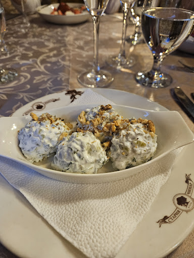 Delightful place where we enjoyed our first meal in Bulgaria. Great food and nice ambiance. We did not have reservations but many others did. They have an English menu but appropriately they mainly speak Bulgarian, staff made great effort to carefully make sure we got what we needed, so nice of them. From outside on the street, you will not see a sign “Staria Chinar” but look carefully you’ll see that the menu posted outside says that, so, easy to find the place. They have sort of a hunting / game / deer theme which we liked. For example the plates, menus , door handles, decorations. My wife loved that they had well prepared beef brain with a yummy mayo/garlic sauce, which was panko breaded and fried, I tried it and it tasted great (best brain I’ve ever had 😂). Also tried the Snezhanka (Snow White salad, yogurt based) which is pretty local we read, and loved it. Mezze platter was meaty (listed 4 items but had 5) and good, a chance to try several sausages etc that we don’t often/ever see. One of the mezze items seemed to be thinly sliced fat at room temperature with paprika (not sure, fun to eat new stuff you cannot exactly identify) which was the only thing that we we did not like too well but interesting to try. I loved my cooked venison in a pot, to us a bit too sweet due to plums and little tiny raisin like things that were tiny and not shriveled, some discussion among us about what those exactly were. But all great. We liked our wine and please do order ice cream as the serving is fun (see video). I tried some pear brandy and re-confirmed I personally am not a brandy guy, it was not bad though. Careful note: the ice cream seemed to both of us (independent conclusions) to taste like peanuts but maybe we’re wrong, but I checked and the fancy menu euro-coding about warnings / “contains” did not identify that the ice cream had peanuts. We did not ask because we are blessed with no allergies and inquiring when we cannot speak Bulgarian would be laborious, however, looks like anyone with serious allergies should not make any assumptions and should always inquire, we’ve all read about deathly reactions to peanuts not being disclosed etc. But no issue for us at all, and maybe the flavoring was not peanut or something artificial. We loved this place....