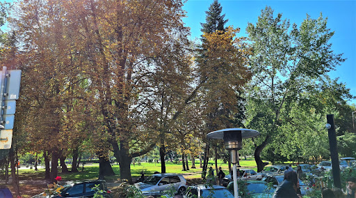 See .... …. It was full of people because of the beautiful warm autumn day. Every table on the terrace was occupied. ...... …. Nice view of the park, we saw it from our high bar table. We watched children rollerblading, people walking, there was an exhibition; …. The appetizing appearance of the dishes. …. The beautiful arrangement in the carafes with the water - reminded me of those in Happy Pig; …. The look of the Snow White cocktail, served in a green apple - very impressive!