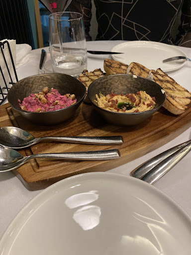 Read moreLots to say about this place. For a place trying to clearly deliver a fine dining experience, as most places in Bulgaria, they lack qualities that I expect when you pay 100lev+ per person. First off, we arrive, no hostess to greet us and the waiters send us back to wait for her to come back. Then, the waiters did a great job making sure everyone had their drinks. After that, because they required us to order starters in advance as we were a big group (12 people. Something I find crazy to start), they brought the starters and just put them in the middle of the table without saying anything. This created maximum confusion. So we continued our conversation without touching our food for 5 minutes until the waiters came back and explained which dish is which and gave them to the correct individuals. Then, the service was inconsistent. We were there for 2 hours and at times we had empty glasses for 15 minutes without having a server offering us a new drink and at times, they were terrific. Some waiters were terrific at explaining dishes, offering drinks and providing a terrific service. There was one or two that created some confusion and was difficult to talk to (in Bulgarian). Then, seeing a waiter vape/smoke while working and having some people smoke their electrical cigarettes indoors is crazy. Also having napkin holders on tables is crazy for a fine dining restaurant. It is not a bistro. And for the food, I appreciate the menu and the chef's trying interesting techniques. Great flavors with most dishes. But once again, they had interesting choices. Some dishes were presented beautifully, great job. But for the apple salad, why did it have so much dressing? It felt like we were drinking the dressing at points. For the duck, an interesting choice. It was tasty but it felt like we were eating a duck meat loaf. Not very elegant. And the pickled radish is always a smart choice to have with the duck on the plate (the acid cuts through the fattiness of the duck nicely) but why was it whole? I would expect a julienne cut to work best. The pasta (fussili) was terrific and my favorite dish. Desserts were nice as well. That is enough I guess. Decent experience but still a lot of short comings. I have yet to find a proper fine dining experience in Bulgaria. It meets the "Bulgarian fine dining"...