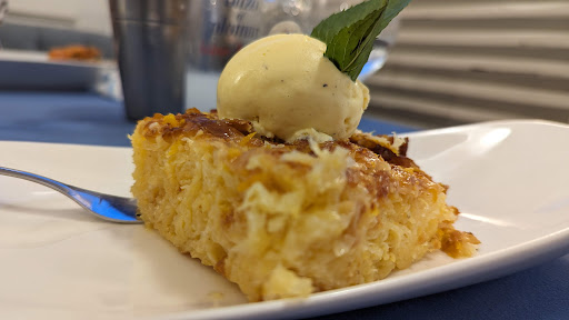 He was also sour today, annoyed that we asked what rice the pilaf was and generally treated us with zero care, hospitality and attention. His other colleague was as always great, but this one was bad and we didn't leave a big tip. On our way out, we were shown how annoyed he was by our action to do so. We wished good night and he just ignored us in hatred. The customer gives or doesn't give tip, depending on how satisfied he is with the food and service. We were not. The fish was heavy breaded, the souvlaki was not at all like what I ate before there. It was not tender and juicy. I paid most of the bill out of sheer shame I brought a friend there and ruined her meal. Mine was ruined anyway. So, why should I bring my dear colleagues and be serves...
