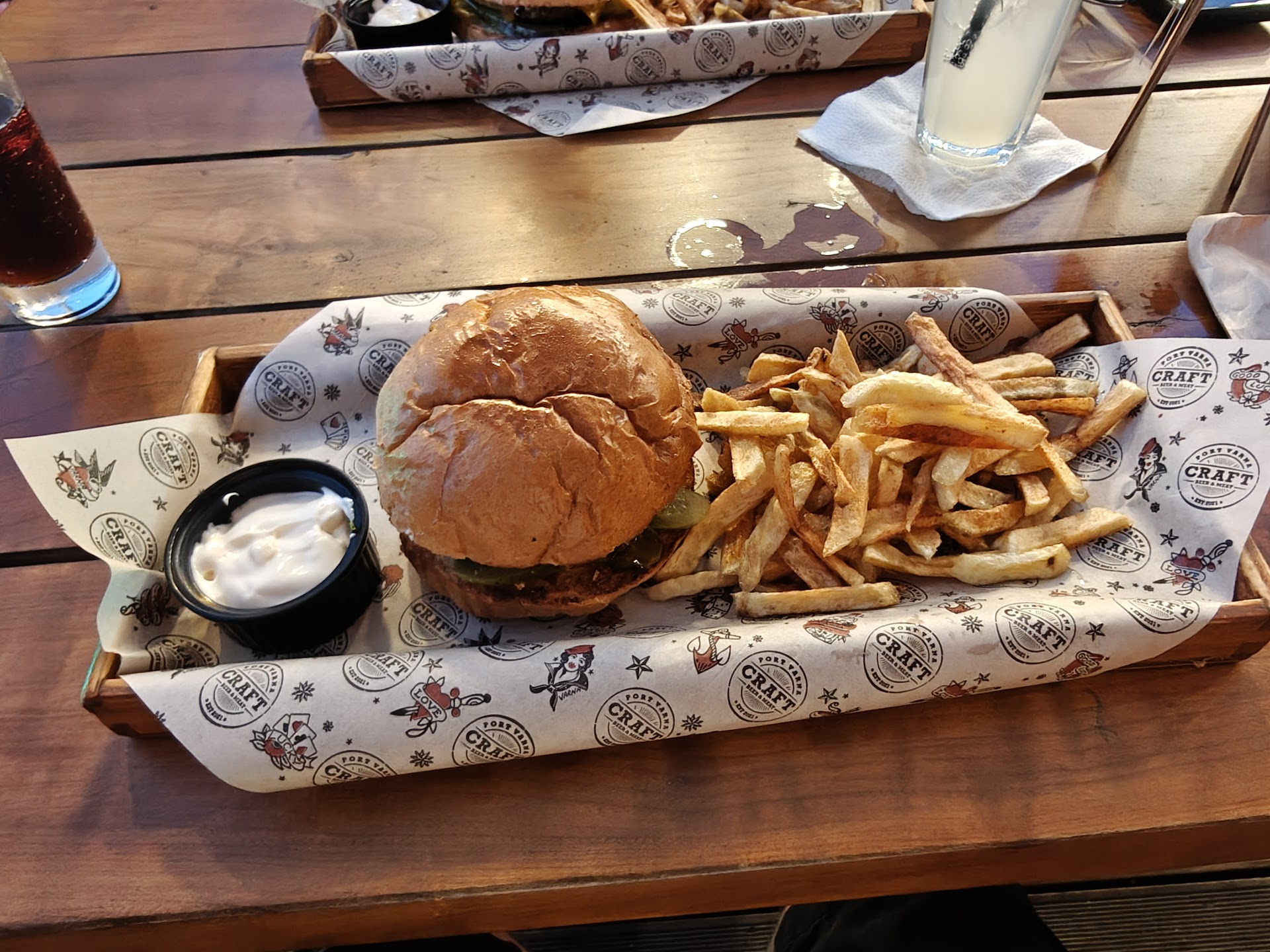 The food was incredible. The Caesar salad with crispy chicken was simply exceptional - fresh, crispy, and bursting with flavor. The main course, the smoked pork steak, was top-notch - well-cooked, well-smoked (in their own smokehouse), and with a tantalizing aroma. And of course, the Craft burger was absolutely perfect - a combination of freshness, juiciness, and flavor that simply transports you to culinary heaven.