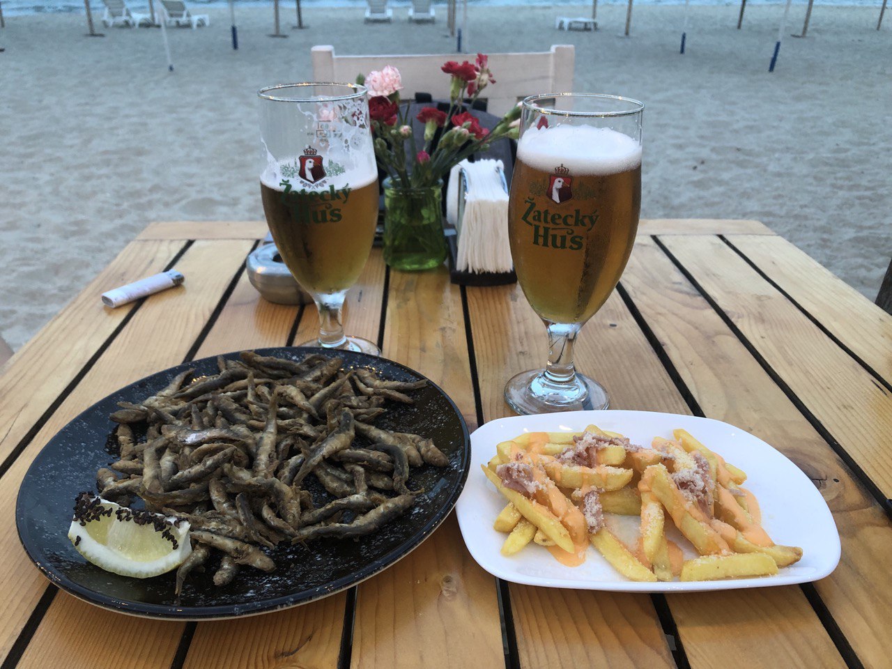 Read moreПервое негативное впечатление которое я пишу тут об ресторанах Варны. Это самый худший ресторан в городе.Обслуживание на самом низком уровне. Официант получив заказ,который выполняется за несколько минут,просто пошёл курить и пить кофе. Дальше ещё хуже. Мы заказали блюдо под названием "Цаца", это мелкая рыбка обжаренная во фритюре. Прекрасно подходит под пиво. Нам принесли это блюдо,но от него воняло прогорклым маслом и на вид рыбка вызывала подозрения об её свежести. Мы промолчали, ничего не сказав. Не любим мы ругаться. Но,дальше терпеть было невозможно. Жена заказала креветки в кокосовом соусе с петрушкой, в меню было написано 370 грамм. Нам принесли блюдо где явно было видно,что там нет даже и 100 грамм. Это были просто вареные креветки,без всякого соуса. Да и вид они имели как и та бедная рыбка. Я тоже имел неосторожность заказать паралельно с женой блюдо из Рапанов в томатном соусе и вине. В фото меню вы сможете увидеть наименование и ингредиенты этих блюд. Наше спокойствие подошло к концу. Мы подозвали официанта и указали на то,что все блюда не соответствуют меню и уж тем более весу этих блюд. Что вы думаете произошло дальше? Официант принес супруге жаренный хлеб и сказал,что повар забыл доложить этот хлеб к весу блюда!!!((( И что всё вместе составляет 370 грамм. Мало того, подошёл какой-то огромный молодой человек агрессивно настроенный и начал на болгарском высказывать моей супруге,что повар просто забыл положить хлеб и можно было из-за этого скандал не подымать. Говорить на английском он просто отказался.Замечу,что мы вели себя вежливо и почтительно. Я не хотел при супруге выяснять отношения с этим человеком,поэтому сказал,что вопросов к ним мы не имеем. Это человек сел напротив нас и общаясь с каким-то типом бандитской внешности, всё время кидал взгляды на нашу компанию. Мы попросили счёт и я сказал ,что рассчитаюсь картой. И тут ждал очередной сюрприз. Они не принимали оплату картой а только наличными, объяснив это тем что по всей Варне проблема с интернетом,это было явное издевательство над гостями города,которые приезжают в Болгарию чтобы отдохнуть и потратить тут свои деньги. При входе,была информация о том,что можно рассчитываться картой и никакой информации о том, что в данный момент терминал...
