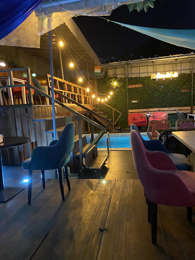 Read moreThe place is cozy. They have outlets and a view of a tiny swimming pool and a bar. I ordered a mushroom with green peas, and the spicy level was perfect, but it was bland. It wasn't really the taste of the real Indian compared to what I have tried. Lassi wasn't available. I'm not sure if they accept cards, so...