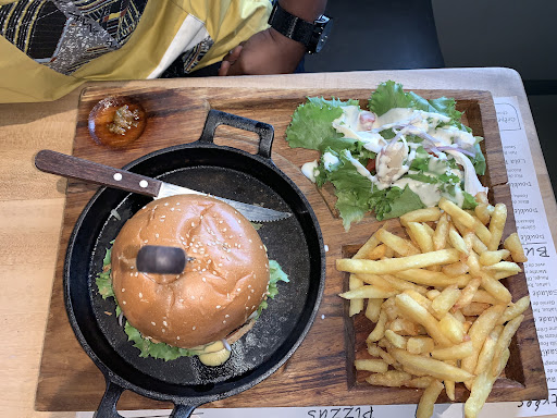 Read moreI loved it! They have the best cheese fries I've had in abidjan, the burger was so juicy and fresh, great quality. The pizza is also delicious and it's huge! Portion sizes are great compared to the prices which are very affordable. We went on Sunday around 2:30 pm, we called on the way to check if we need reservations they said we can just come since we were only 2 people. The place was full and we go a good table for 2 on the side which was convenient since we had a baby with us. The service is quick and friendly despite the fact that is was completely full. Definitely...