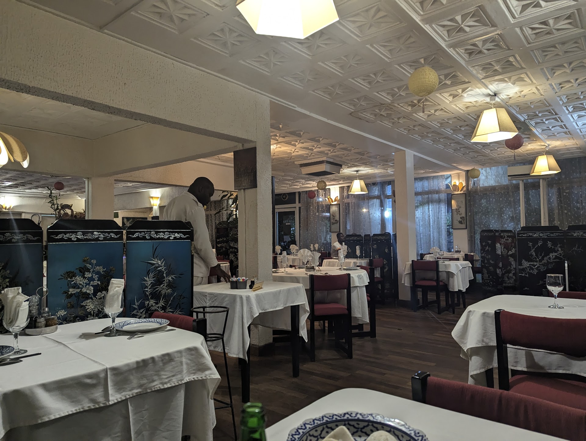 Restaurant is well situated. Seems a bit old.But old can be good. Parking are available outside. But it's just next to a junction, can be hectic during the day. Lot of seats available so no reservation needed I guess. The personnel is helpful and knowledgeable. They know the menu and what's inside. Seems to me they have been working there for some time. Which is a good sign. The menu is very exhaustive. We ordered 3 starters. Not deceived. They're good. Was deceived by the main course. Portions are small but with the starters it's ok. Price is average. Starters between 3000-5000cfa. Main plate between 5000 and up. They have a wine menu if you're an amateur. Out of three beer they had only one. The main course is ok. Taste is good. Well seasoned. Service is decent , within 15-20min. Starters within 10-15min. The only stuff I was not comfortable was the smell . It had this smell of moisture. Like I said it's old. And the place needs some renovation. Payment by cash and card is accepted. Can't confirm for mobile money. Take away is possible. It's not an halal place. Their pork...