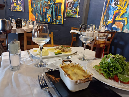 Read moreHad a delightful lunch at this restaurant. I had Merou (grouper) with mashed potatoes, that was very good, and my friend had a vegetable gratin and a salad, which were both good. We finished off with a passion fruit mousse. The dark blue walls exhibit several paintings (at the time of our visit with African motifs and bright colors) that are for sale and make the room feel welcoming. The wooden furniture give the restaurant a beachy atmosphere, but the tablecloths and napkins elevate it and give it a French look. Service was very friendly, but not...