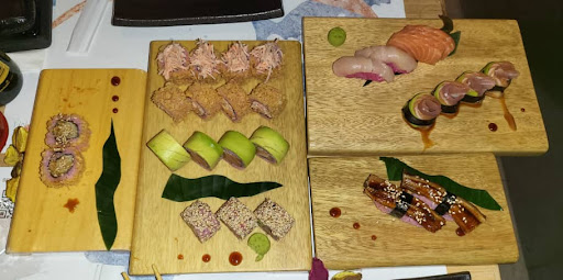 We tried a variety of dishes including : Mise en Bouche "Appetisers and Dumplings", Tsu-shimi, Sushi, Sashimi, Maki... Food was all tasty, but all tends to be served when ready or at once, which makes for a rather speedy rather than a relaxing meal. The place is nice inside, no background music, which means you can at least have a worthwhile conversation while eating. Restaurant is fairly compact but doesn't feel cramped. Prices are reasonable but some portions are too small. Last but not least the presentation on the food on the table could be improve with expendable tables for more space!! However it's a decent...