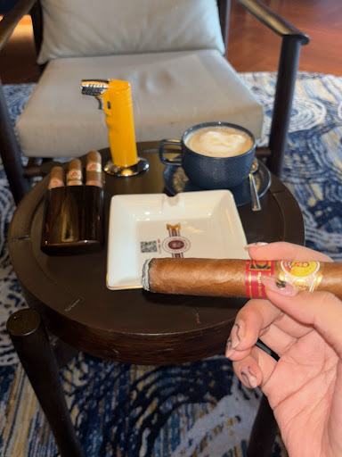 The venue itself is well-designed, offering a cozy ambiance. A small cigar selection is available, featuring cigars from Habanos, and I appreciated that there was no cutting fee, as I had brought my own cigar. I enjoyed an Aging Room Core Habano Mezzo by Rafael Nodal—a truly excellent cigar with medium-bodied notes of floral, nutty flavors, cedar, earth, and a touch of sweet spice. It lived up to the reputation of Nodal’s Aging Room brand, and the experience was further enhanced knowing it was supplied by Sticks ‘n’ Smokes in Phnom Penh.