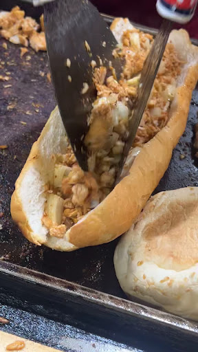 wow! chicken baguette🥖🍗 is perfect. waaaay more fries 🍟than expected. I could barely finish half of both😇. next time to make it easier to share, I will ask to cut sandwich in half. nice happy family-run place. low prices. good menu variety. they have a new cooking station too. the best place to eat here in Kampong Saom. (chicken baguette iswhat I order most often)