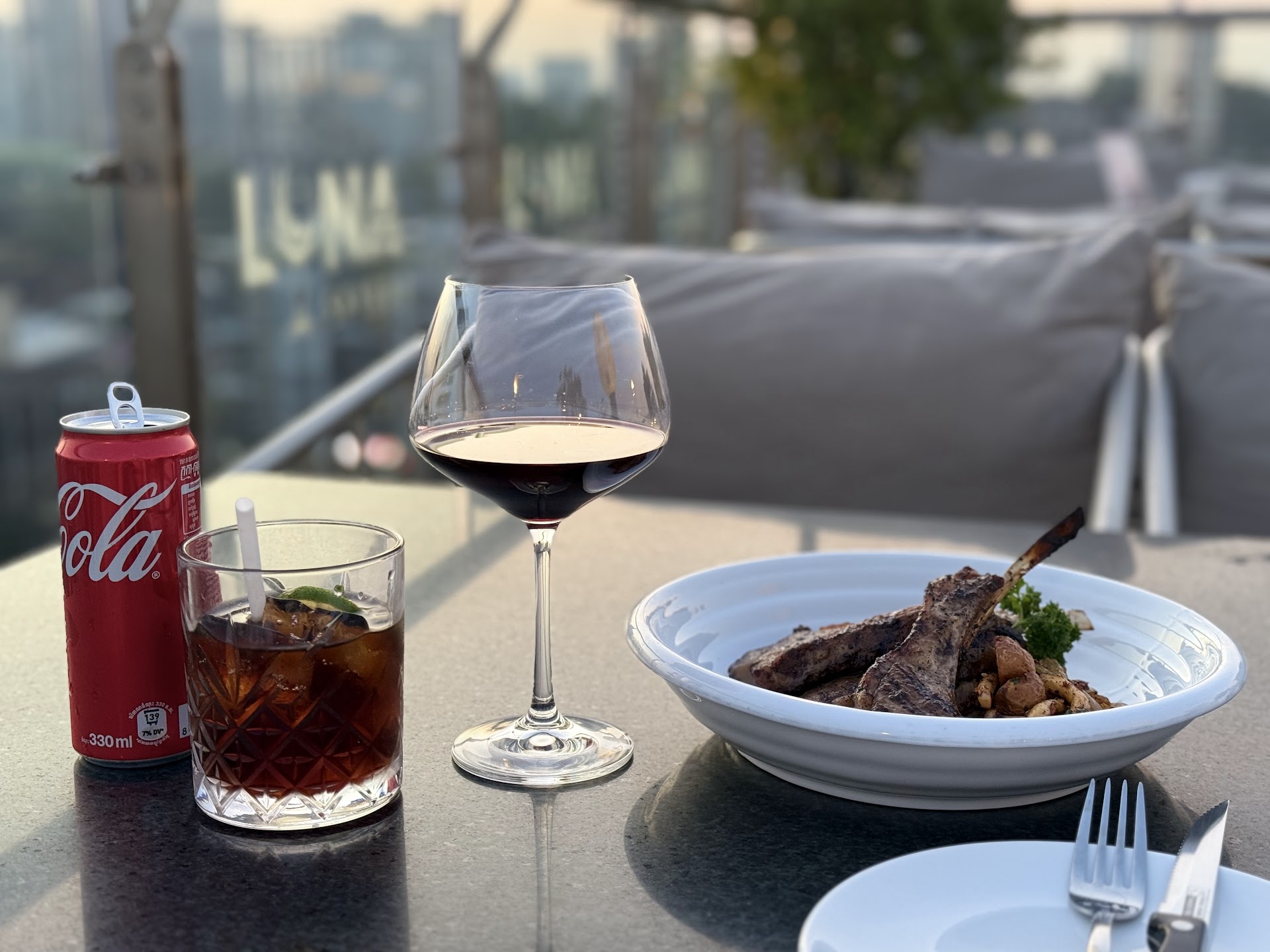 Food & Drinks: The lamb chops were well-cooked and flavorful, and the red wine paired perfectly. The dessert was simple but tasty and satisfying. I got Lamp Chop + 2 glasses of Red wine + 1 Coke + 1 desert cost around $45