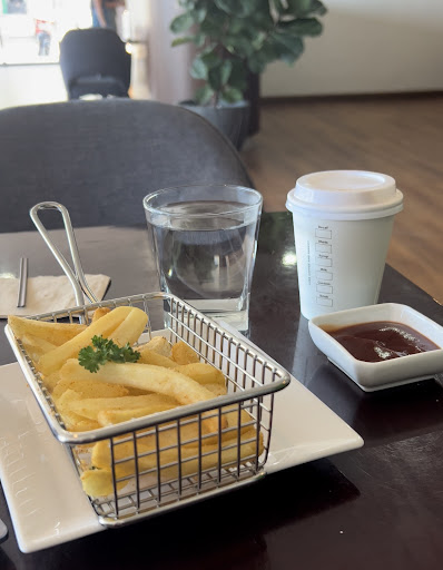 Read moreThé café itself is nice, well designed and air conditioning is good. But the food is disappointing. Onion soup tastes fine, but the portion is tiny!! I was still hungry, so I ordered French fries. It supposed to be fries with Parmesan and truffle oil, but in fact I got absolutely regular fries. Matcha latte for some reason come with sugar and they don’t have it without sugar. Coffee was good, food is way overpriced for what you get. And for some reason the waitress brought me hot water. Everyone else got cold water, but I...