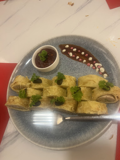 Read moreA delightful fusion twist! The Chicken Omelet Wrap was beautifully plated with bite-sized egg rolls stuffed with tender chicken. Each piece was topped with a fresh herb garnish and paired with a rich, flavorful dipping sauce that brought a nice kick. The side sauce art added a creative touch to the presentation, making it feel upscale. Perfectly balanced in texture—light egg wrap with juicy filling. Ideal as a starter or a light main.