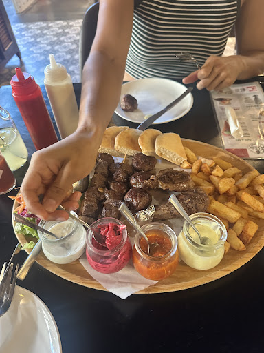 When the meal arrived, the lamb chops were as hard as rocks. After sending them back, we waited another 10 minutes for replacements, which were slightly better â but the rest of the mixed grill was inconsistent: about half the meat was still tough and dry, the other half just about edible. The seasoning was bland, and the chili condiment had no spice at all. They offered Tabasco, but we were hoping for genuine Mediterranean flavor, not bottled heat.