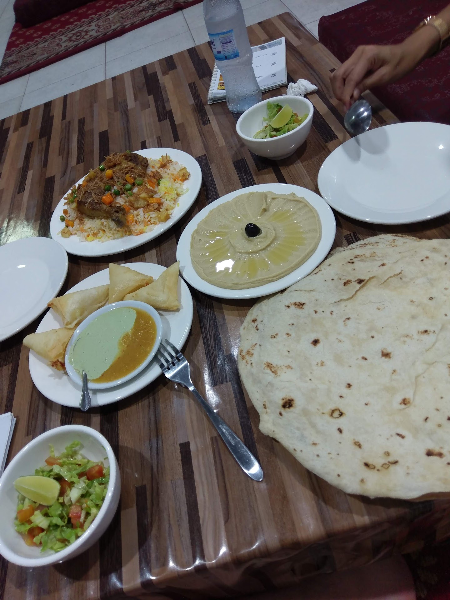 Read moreThe food was very tasty, the price was reasonable, and there was a good selection with good vegetarian options. The service was friendly and efficient, and the premises were clean and tidy. I would suggest adding some small soft cushions for propping behind your back when sitting on the low couches. I also think it would be more environmentally friendly to serve bulk purified water in glasses rather than handing out plastic bottles to all customers. Plastic bottles require a lot of fossil fuels to be manufactured, more to be recycled, and are...
