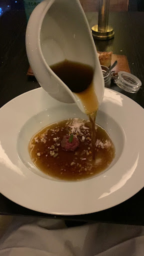For the most part the food was tasty. The asparagus and its béarnaise was yummy, the mushrooms were flavorful, and the cake was absolutely delicious. However, the consommé was quite bland, reminding me of beef stock, and was a little disappointing. I expected something more like the consommé served from birria in Mexico, but it was really lacking in flavor.