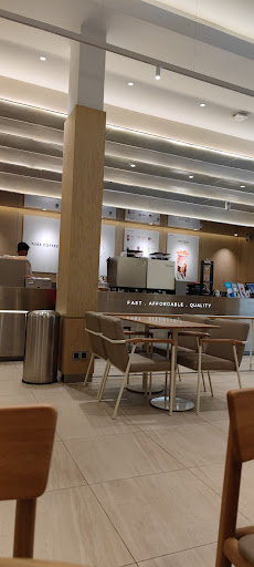 The inviting ambiance of Tube Coffee's 271 branch is spacious and warm interior. The clean lines and light, neutral tones create a modern yet comfortable atmosphere, perfect for both focused work sessions and casual meet-ups. The ample seating, as seen in the photographs with its well-arranged tables and chairs, suggests a welcoming space for patrons to relax and enjoy their drinks.