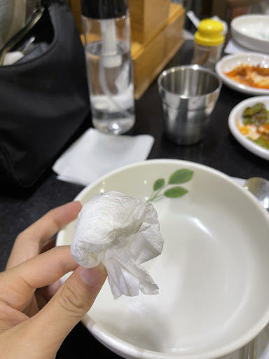 We ordered the cold buckwheat noodles and seafood hotpot and it took way too long for our food to be ready. The buckwheat noodles were clumped together and the broth was sweet but also didn’t taste much like anything. Worst naengmyeon I’ve had. The seafood hotpot was alright. The bowl was also dirty (as seen in pic after wiping it) which can be a health concern. The kimchi and lettuce side dish was...