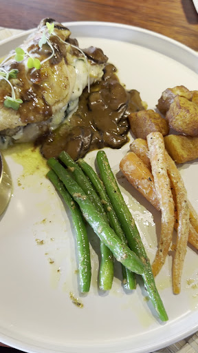 However, the prices on the menu are a bit high compared to other places in town. For example, the stuffed Chicken breast dish I ordered was $15, which I feel should be priced closer to $9. Additionally, the lack of welcome drinks or any form of greeting while waiting is disappointing for a restaurant at this price point. The staff is also not very informative or friendly.