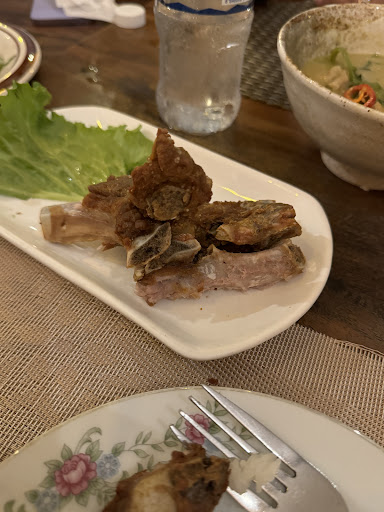 The food on the other hand left a lot to be desired. It is typical of what one would find in an American Thai restaurant, the flavors were very bland and confusing. My wifeโs soup wasnโt sour enough, the ribs were extremely dry and tough and had no flavor, no lemongrass, no juiciness. Beef Lok Lak was extremely tough and my daughter had difficulty finishing it despite it being her favorite Khmer dish. I had a feeling most of the food was pre-prepared, my sonโs meal took the longest and arrived after most of us were done: a sandwhich.