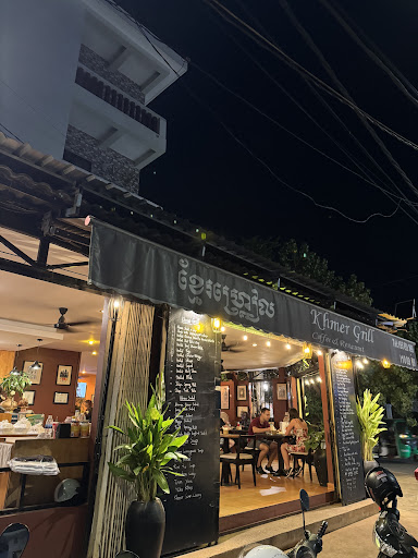 Khmer Grill was our first exposure to Khmer cuisine. Was our first evening at Siem Reap. Arrived late in the evening from Phnom Penh by bus. Were hungry and sleepy and went to this place, which was nearby to our hotel. First thing which struck was the hospitality of the staff, ever smiling and ready to help. We had little idea about what to choose, but found that the menu has some similarity with Thai cuisine. We finally ordered Banana Flower Salad (entirely new to us), Fried Spring Rolls, Kor Ko Soup Chicken with steamed rice, Fried Noodles Chicken and Mango Sticky Rice (dessert). The salad was extraordinary. In India we cook banana flower as a vegetable curry option, but never had an idea that a salad could be made out of it. The accompanying vegetables were fresh and filling. The spring rolls were healthy with adequate vegetable filling and tasty, as well. The kor ko soup was new to us, but was very pleasant to taste, light, flavorful and with rice gives a soothing effect. The noodles were enriched with vegetables and chicken with an egg omlette on top and very tasteful, indeed. The final show stealer was the mango sticky rice, never had a dessert like this before, tasty, light and not too sweet, perfect way to end the meal. The portions were more than enough and price very reasonable. We returned to our hotel with a...