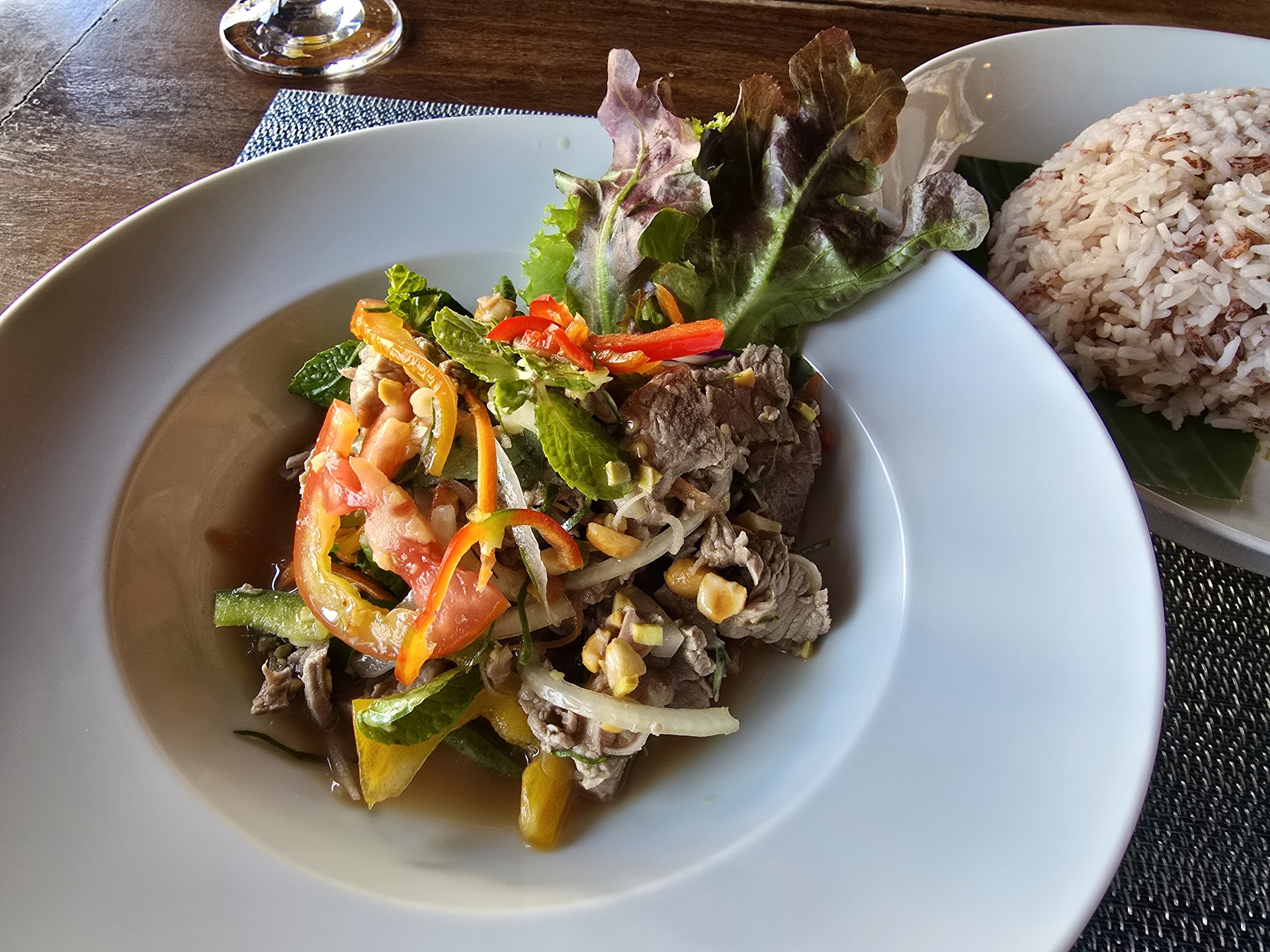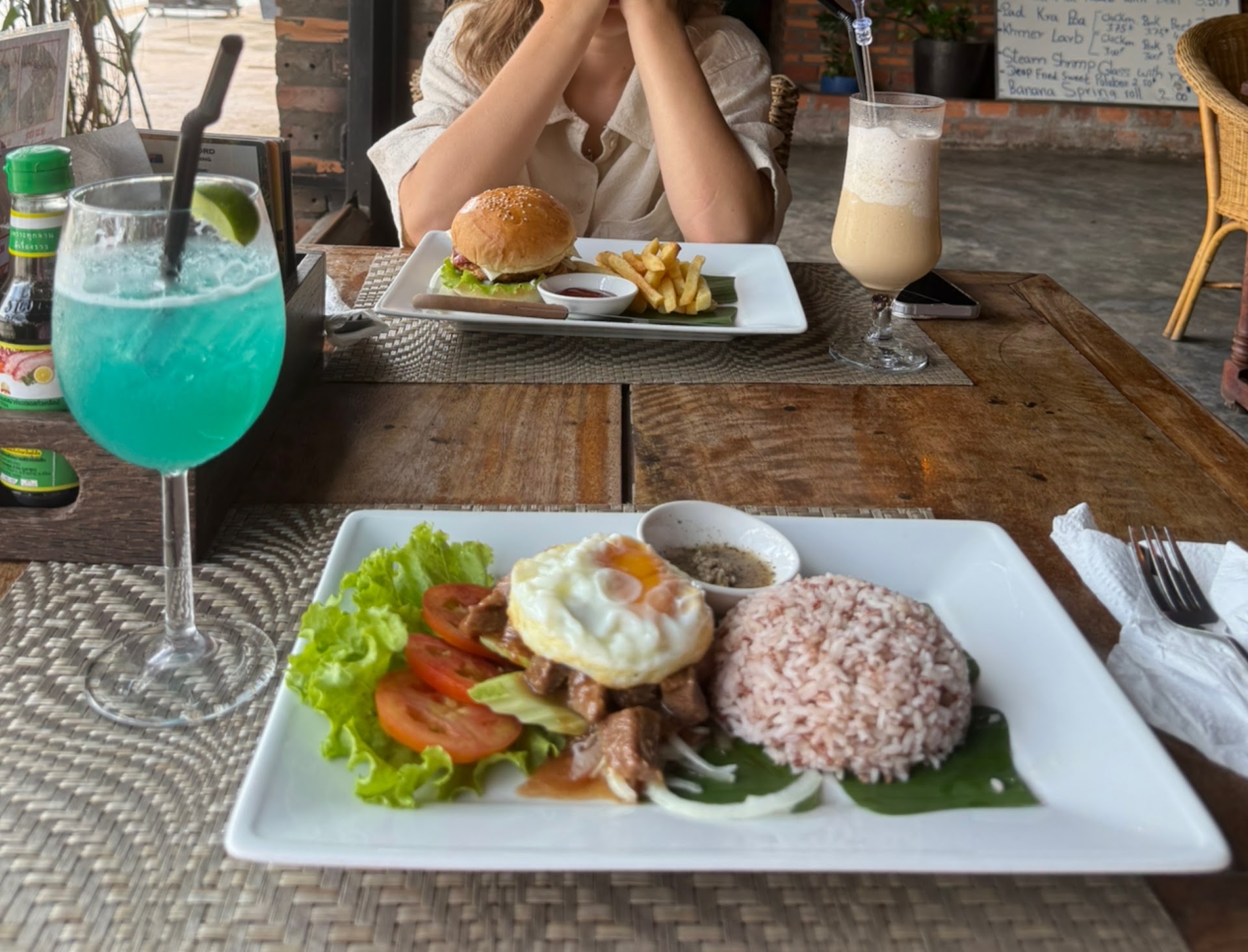 Read morePlein air rattan traditional-decorated, with wood tables and padded rattan chairs and a very affordable, organized, thoughtful and clearly presented menu to match, a general survey of popular Cambodian cuisine. I had the tofu amok and green papaya salad - and both had fresh herbs and peppers, piquant taste and fresh bite/crunch, and layered textures of food made by a chef that knows and appreciates food regards their work with love and pride! The staff also seemed actually happy, joking around and responsive. I’ve found it really hard to eat at most tourist friendly restaurants (no matter the Google rating) because they make the food super sweet and bland and the food and service feels steely and robotic - here the food was tourist-friendly ie not spicy (I wish there were an option to make it more so!); and yet there was still felt a great fidelity to including authentic ingredients and ensuring an enticing, enjoyable eating experience. Amazing price point for a place in which I felt someone cares - and not just for tourist...