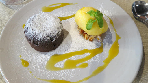 Other than this minor confusion, the service was great and the food quite enjoyable, although the sea bass with pumpkin risotto was underseasoned and thus a bit bland.