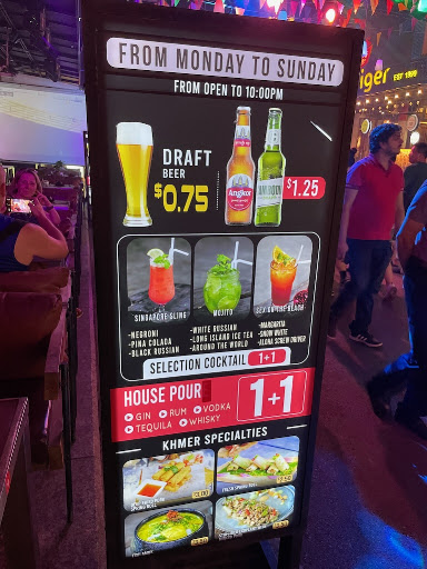 The place to go on Pub Street. Temple is a large brand in Siem Reap, which bars, clubs and even a hotel, and the brand pretty much started Pub Street. Drinks are well priced before 10pm and after that time, Angkor draft still remains highly affordable at $4 for a large jug or $8.50 for a tower (2.5 litres).