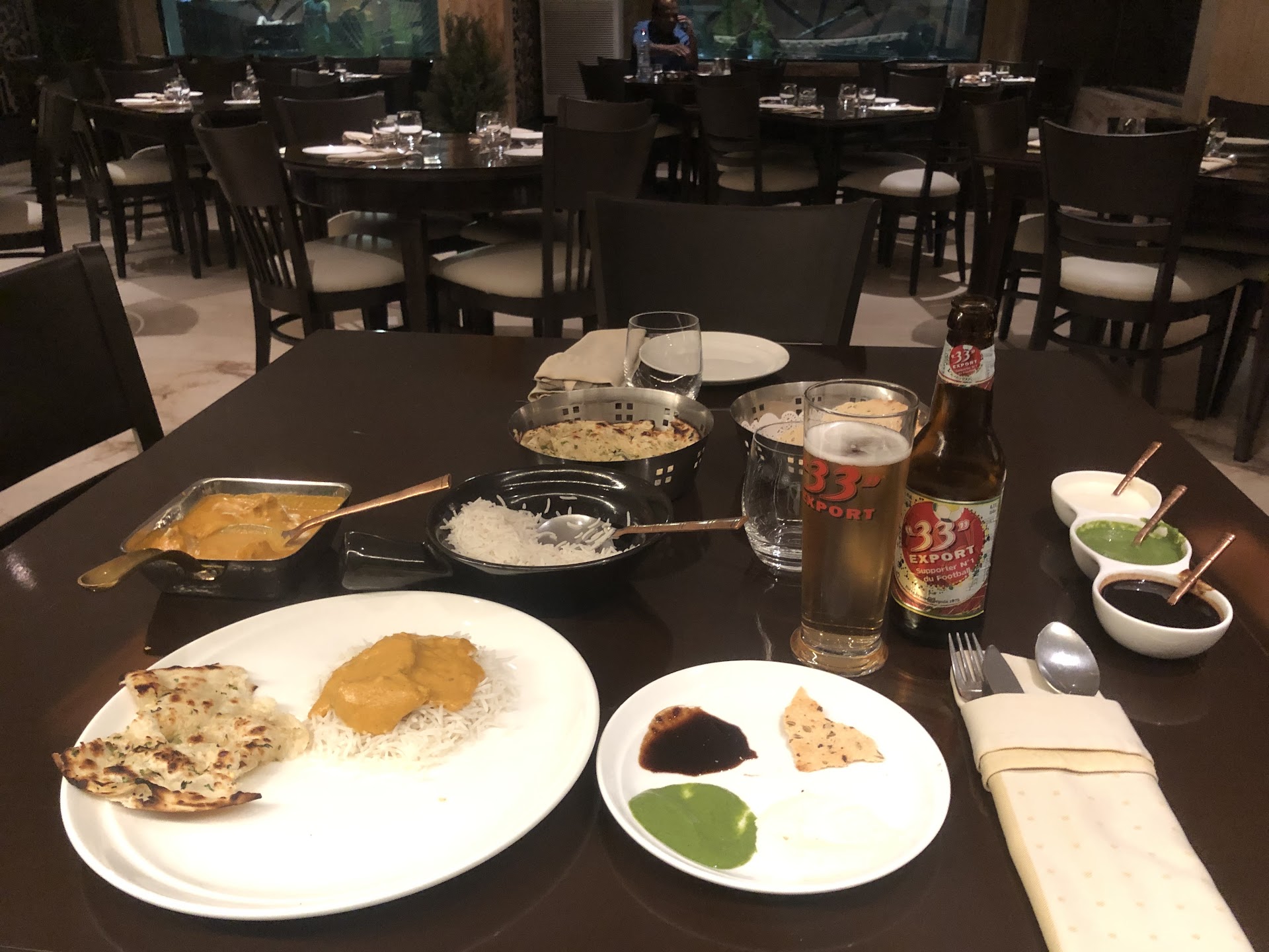 Read moreThe venue itself was very beautiful and welcoming. Music was also appropriate for a calm business dinner or to eat with your partner. We ordered Mutton Dum Biryani (8000 XAF) which was tasty and nicely presented with a big portion. We also had crab masala (8500 XAF) which had such a small portion (it would have been good to suggest a side dish). Luckily we had Punjabi chicken wings (6500 XAF) as starter but they were not extraordinary. The waiter was friendly and had beautiful traditional clothing. However, she seemed to lack experience and also served our wine with broken cork inside (too bad as the wine was not cheap). We payed around 60.000 XAF for both of us which makes me find the place overrated, despite design efforts and a friendly salutation of the...