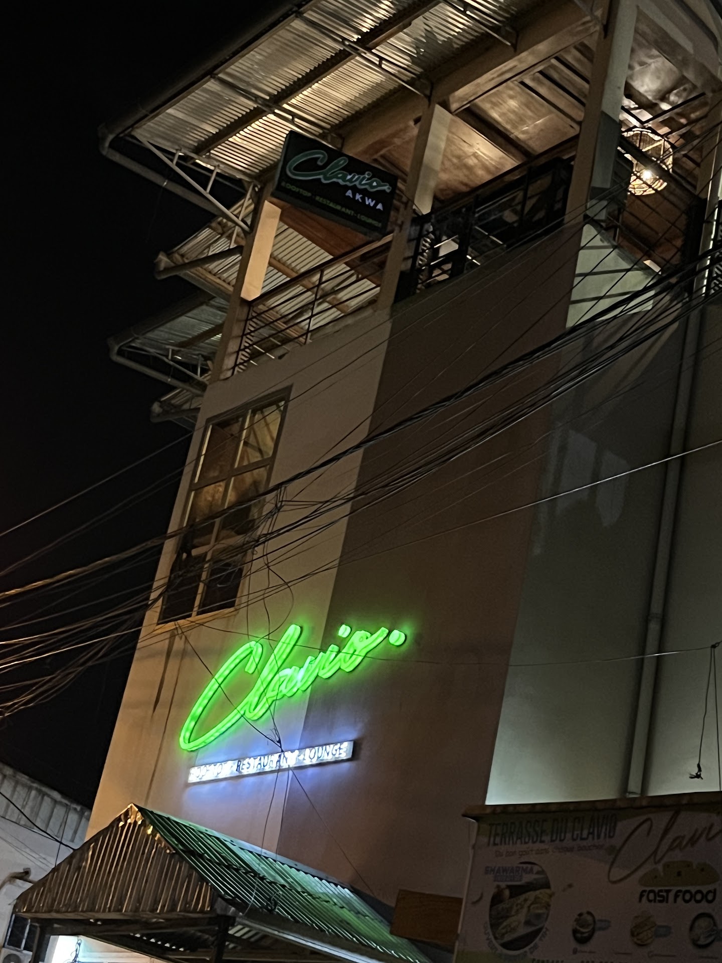 Read moreJ’ai découvert un lieu pas loin de mon lieu de travail , il y’a quelques jours, il s’appelle le Clavio.Il est Situé à Akwa, à la rue Mermos à quelques mètres de Douala Bercy. Donc, il est facil d’accès.C’est un rooftop, un restaurant, un lounge et les plats sont circulants.En parlant des boissons ils ont une carte assez étoffée, j’ai bien aimé les cocktails.La chose qui m’a le plus marqué, c’est le cadre, car c’est super cosy, idéal pour une sortie entre amie et pourquoi pas entre amoureux . En plus,sa terrasse,est plein air, vous permet de contempler et de découvrir la ville de Douala sur un autre visage. L’air frais et l’ambiance du restaurant, donne juste une envie de vraiment en profiter.Je vous le conseille pour 2 raisons: l’accueil chaleureuse du staff et du chef de staff et le cadre qui...