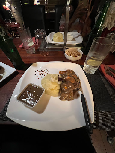 I went to the restaurant at night and it was a nice little vibe with live singers. I ordered rice, fries, steak with creamy garlic mushroom sauce. I ordered a well done steak but it still had runny blood which really disgusted me. Other than that my meal was delicious. My boyfriend ordered poulet yassa but he found it nasty. Also, by reading the reviews on here and Tripadvisor there’s one thing that’s been said in common, the service is slow. They served the complementary bread 30/40 minutes after our arrival and then our food came 30 minutes after that. They took forever to bring the bill too. The waiter was polite and helped with suggestions and also clarified certain things on the menu. It was a cool...