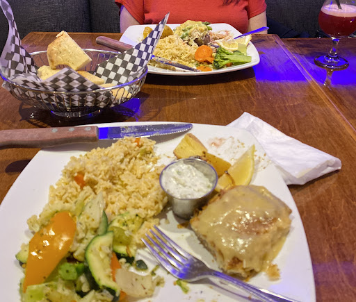 For entrees, we ordered the petite rack of lamb and the schnitzel champignon. The petite rack of lamb was an excellent choice. The meat was flavorful and paired beautifully with the special spiced rice and vegetables, which elevated the dish with their unique and complementary flavors. However, the doneness of the lamb could have been better; I had ordered it well-done, but it leaned more toward medium. That said, this slight misstep didn’t overshadow the overall quality, which was still very enjoyable. As for the schnitzel champignon, it was a good dish with a lot to like. The gravy on top was a standout—it added richness and made the dish much more delightful. The sides were once again perfect, contributing balance and flavor. The only critique was that the meat could have been a bit more tender and packed with a bit more taste, but even so, it was a satisfying dish that complemented our meal well. Overall, the entrees contributed to a memorable dining experience that matched the festive spirit of...
