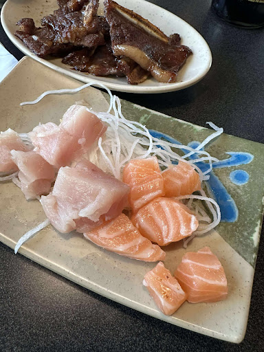 The service was not up to standard. The servers were friendly, but we were one of the only tables in there on a slow weekday evening, and we couldn’t even get water refills without having to ask each time. Considering how small the portions were, it took an unreasonable amount of time for the food to come out even with at least 4 different cooks from what we could see coming in and out of the kitchen. And of course they bring the cheaper items out first and make you wait for the sashimi and BBQ, so by the time they arrive you have slowly lost your appetite.
