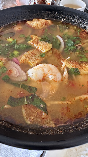 Food was awesome!!! I have been to lots of these restaurants, some have mix of Vietnamese and Indian, Chinese, Filipino, Mediterranean, European, etc... So far this place has offered a good portion of food for the hearty eater. We got the vegetable soup and it was good for the rain. It has that sour taste that's good for your throat that Thai places make. You know it's not the water-only broth. The curry was thick and flavourfu, not as oily as Indian food and not as strong that it sticks to your clothes. We ordered more than that but it's all consistently good and nothing was just made out of the can, it seems. They even put on their menu 'made with real vegetables'. We laughed at it BUT WE ARE BELIEVERS NOW.