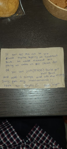 Kudos to the amazing chefs and special thanks and kudos to the manager of this amazing restaurant… Thank you for always representing and for going above and beyond… Especially with the little kind and positive energy note that I received on my last order prior to this one… I would highly recommend everybody to grab this bowl… I was in a really bad mood before I ordered, because I was having a bad day and honestly, one mouth full of their great food turned my negative day into such a positive…😊 Thank you...