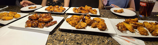 Read moreOK Instarted aorta OK but the booth was super tight, now I am a bigger guy but not that big. Even the thin folks said it was weirdly close seat to table. The waitress was obviously new but what she lacked in experience she fully made up for in positive friendly attitude. The wings well they tasted decent, not bad but not great. $18.75 for ten wings (Thats right $1.88 Each) now food prices are up but them wings are not time or labour intensive. Drop in fryer, drop in bowl with sauce or spice (prepackaged bulk economic flavours nothing unique), coat evenly. There cost is about 87cents chicken, flavor, labour if I made them at home and paid my time, so mark up is not extreme but they get larger discounts and they were nit as good not nearly. Beer selection meh! It is a Wing Bar right? Don't get me started on Sticks and dip lol 2 pieces each of soft floppy 5" carrots and celery with a small portion cup of dip for 3.75 lol. Yes they have to pay the server but honestly the beer mark up was high the wine... one glass cost as much as the bottle of the same and they pay server min wage but I still tip good. Too top it off we sat resteraunt side and had pleasant conversation at 6pm with the other couple who joined us with the hickey game playing on TV with the volume down low but enough we could hear or ignore it. When the game ended UFC came on, some don't enjoy that but whatever same volume just ignore it but then it was turned LOUD (shouting so you can hear me over it lol) we asked if they could turn it down, asked a second time and it was turned down slightly to just be turned back up. For F sake make it that loud in the Bar area maybe but not the dining area.